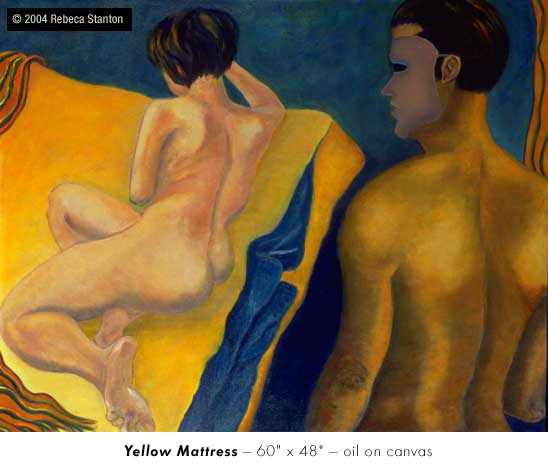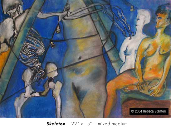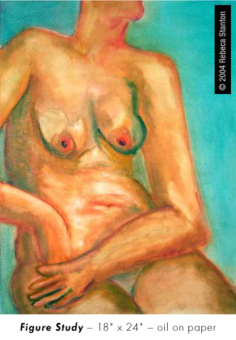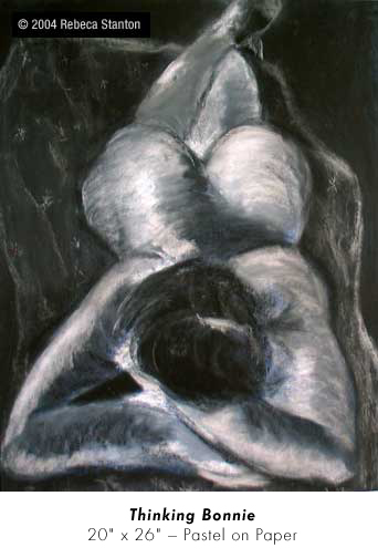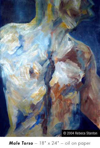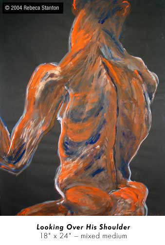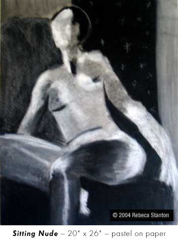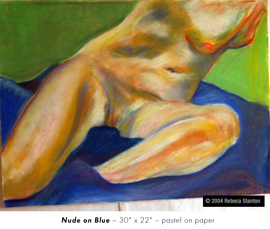 The studies of the figure, rendered in oil on canvas, and the drawings in pastel on paper, were done at the San Francisco Art Institute under the guidance of my dear Professor Bruce McGaw. I begin the drawings and paintings with the model in front of me. The works are completed in my studio from memory or by viewing my body in front of a mirror.