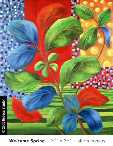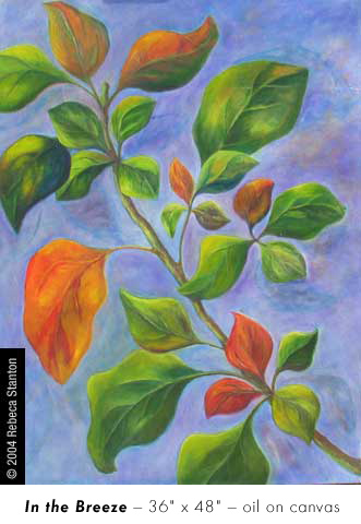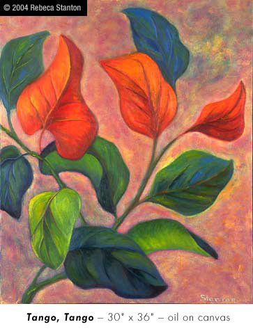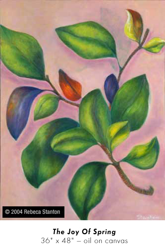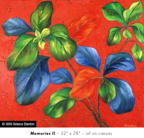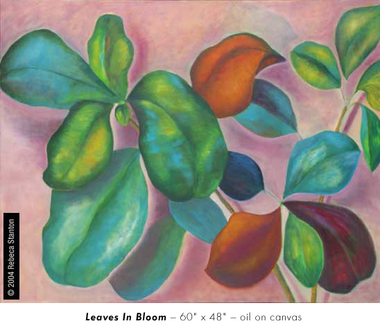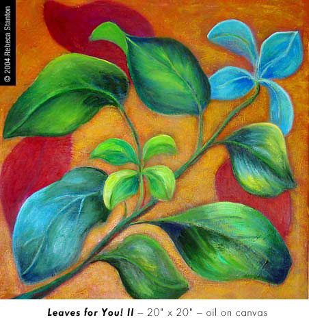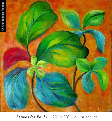 I use oil on canvas to paint imaginary leaves from nature. Leaves speak to me in a very special way. I feel that a leaf is like a human being with its own character and personality and when this happens it touches my feelings and emotions. The brilliance, the color and the shape of a leaf are very important to me because it creates the energy and creativity I need to communicate in my art. I want each leaf to be strong, colorful, vibrant and dancing in space and to awaken in my viewer a feeling of joy, solitude and peace.